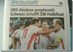 Gespannte Vorfreude auf die EM 2008? Unnötig. UBS-Fachleute (und deren Leistungen wurden erst kürzlich in der Jahresbilanz 2007 belegt) haben errechnet: Tschechien gewinnt die EM in einem Elfmeter-Finale gegen Italien. Die Schweiz gewinnt gegen Deutschland im Viertelfinale und verliert dann gegen den späteren Europameister im Halbfinale.